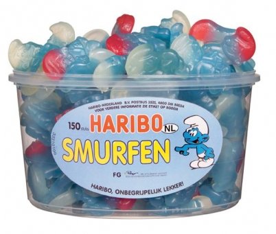 - Product Name: Haribo Die Schluempfe (Smurf Gummi Candy) Tub (150 pcs)