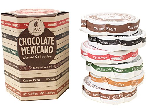 - Contains 6 x 2.7 oz Chocolate Mexicano DiscsCinnamon, Vanilla, Guajillo Chili, Salted Almond, Cacao Puro, and Coffee